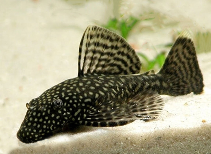 Растут они до 10-12 см. Тело анциструса является темно-серым и покрыто белыми пятнами. Встречаются и полностью белые особи, и рыбки с вуалевыми плавниками. Любой 50-ти литровый аквариум тропического типа станет для анциструсов отличным домом. В нем обязательно должна присутствовать натуральная коряга, которую рыбкам больше всего нравится соскабливать в процессе получения необходимой для жизнедеятельности целлюлозы.