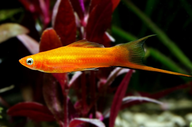 Эти довольно крупные рыбки из категории живородящих вполне подойдут любому начинающему аквариумисту. Нередко в аквариумах можно встретить особей с длиной в 8-10 см. Их легко узнать по мечевидному отростку, расположенному на хвостовом плавнике. В результате успешной селекции выведено немало меченосцев, отличающихся и своей расцветкой, и даже формой тела.