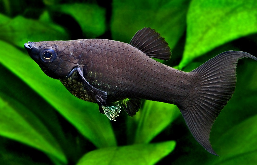 Еще один вид живородящих рыбок. Размеры самок могут достигать и 10 см, а вот самцы моллинезии окажутся несколько меньше. Наибольшей популярностью пользуются рыбки, обладающие черной окраской.