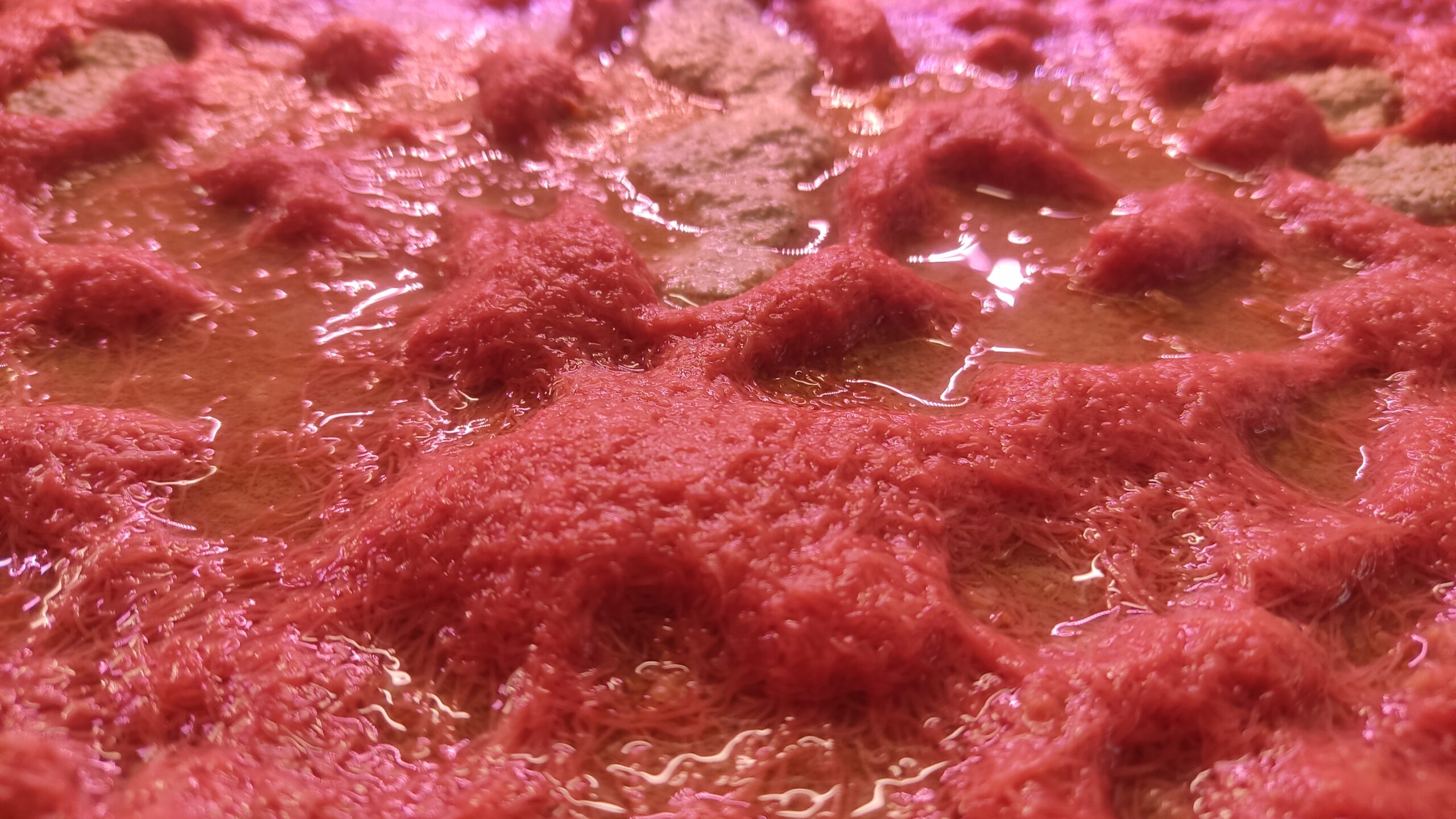 На новых губках трубочник будет постоянно собираться в клубок и неохотно заходить во внутрь поролона. Корм советую давать в виде муки непосредственно на этот комок червя. Он начнет питаться, осваивать губку вокруг себя и со временем полностью займет пространство. Корм вносится по мере поедания. Лучше один раз в 1-2 дня, так чтобы к моменту внесения новой порции старая уже была съедена.