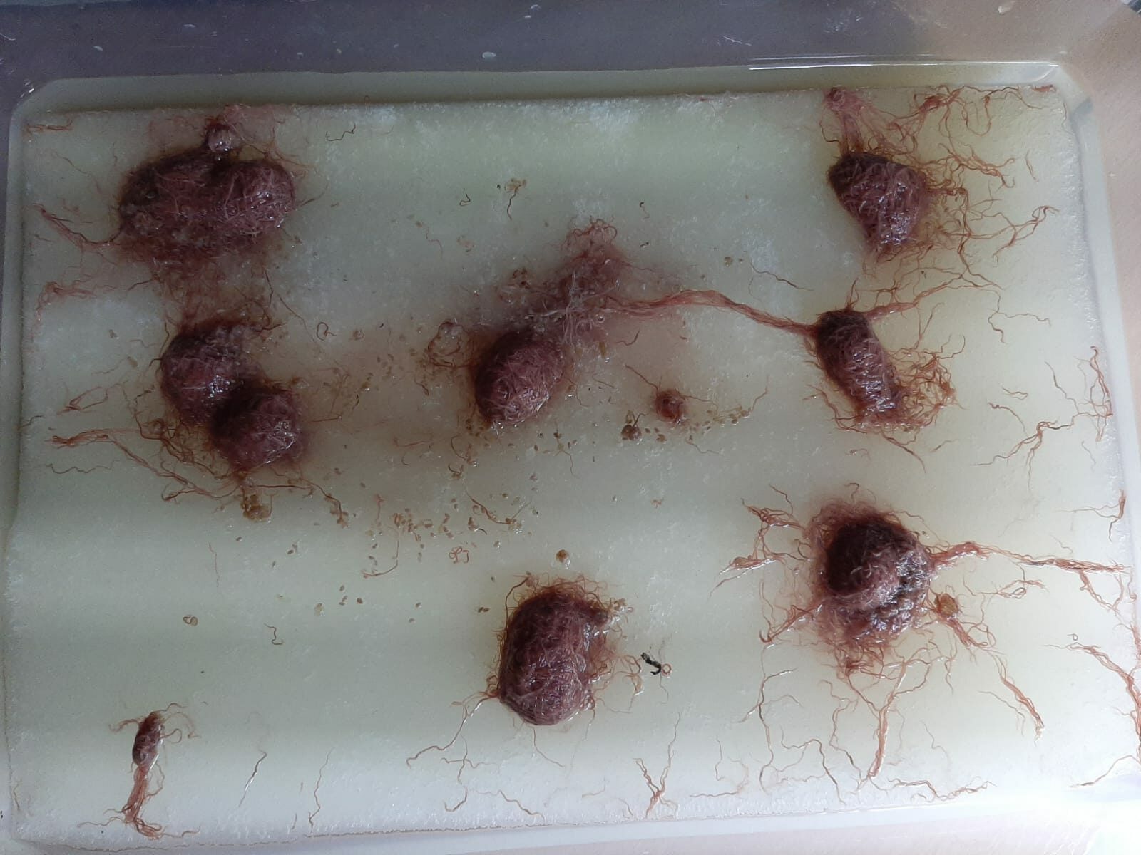 Для культивации понадобятся не маленькие контейнеры, червь любит объем. Например, у меня они 40 на 30 см. Поролон использую как и у аулофоруса, низкоплотный, марка ST 1828 от 2 см до 4 см. Вообще говорят, что трубочнику нужен поролон до 2 см, потому что на нем он только питается и делает гладки коконов, по краям губки. У меня он стоит и на 2 см, и на 4 см поролоне. Особой разницы замечено не было, просто на 4 см культура разгоняется дольше до 3 месяцев. Прошу обратить внимание, я провожу параллели на свои контейнеры. То есть если у Вас контейнеры еще больше, то скорость разгона культуры будет больше и наоборот.