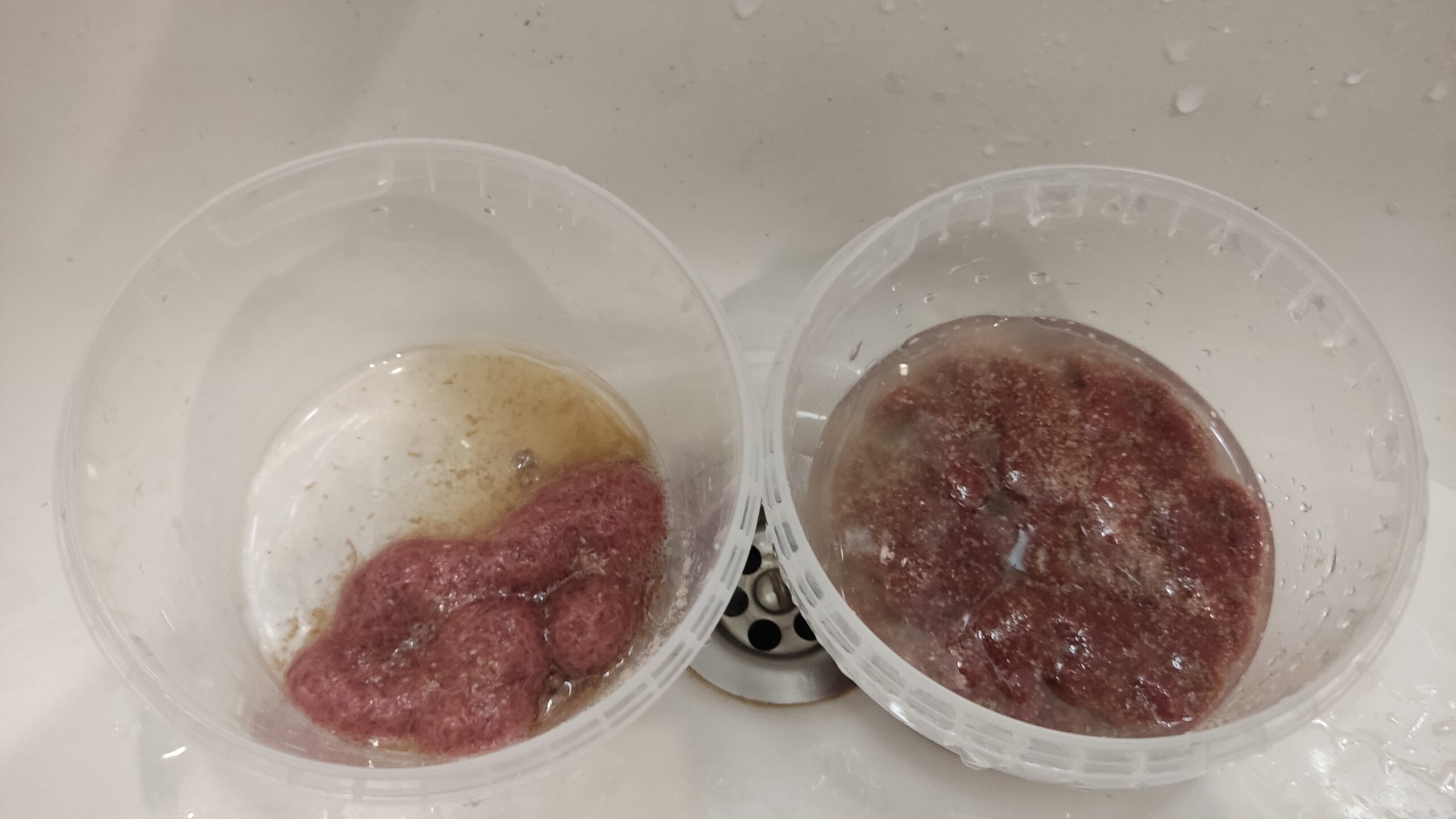 Сбор трубочника произвожу как с губки пинцетом (советую такое делать не часто), так и из воды при подменах — такой способ в приоритете. Принцип такой: приподнимаю губку, сливаю старую воду с червем в ведро. Заливаю чистую воду, вношу корм. Червь в ведре промывается и отдается рыбе.