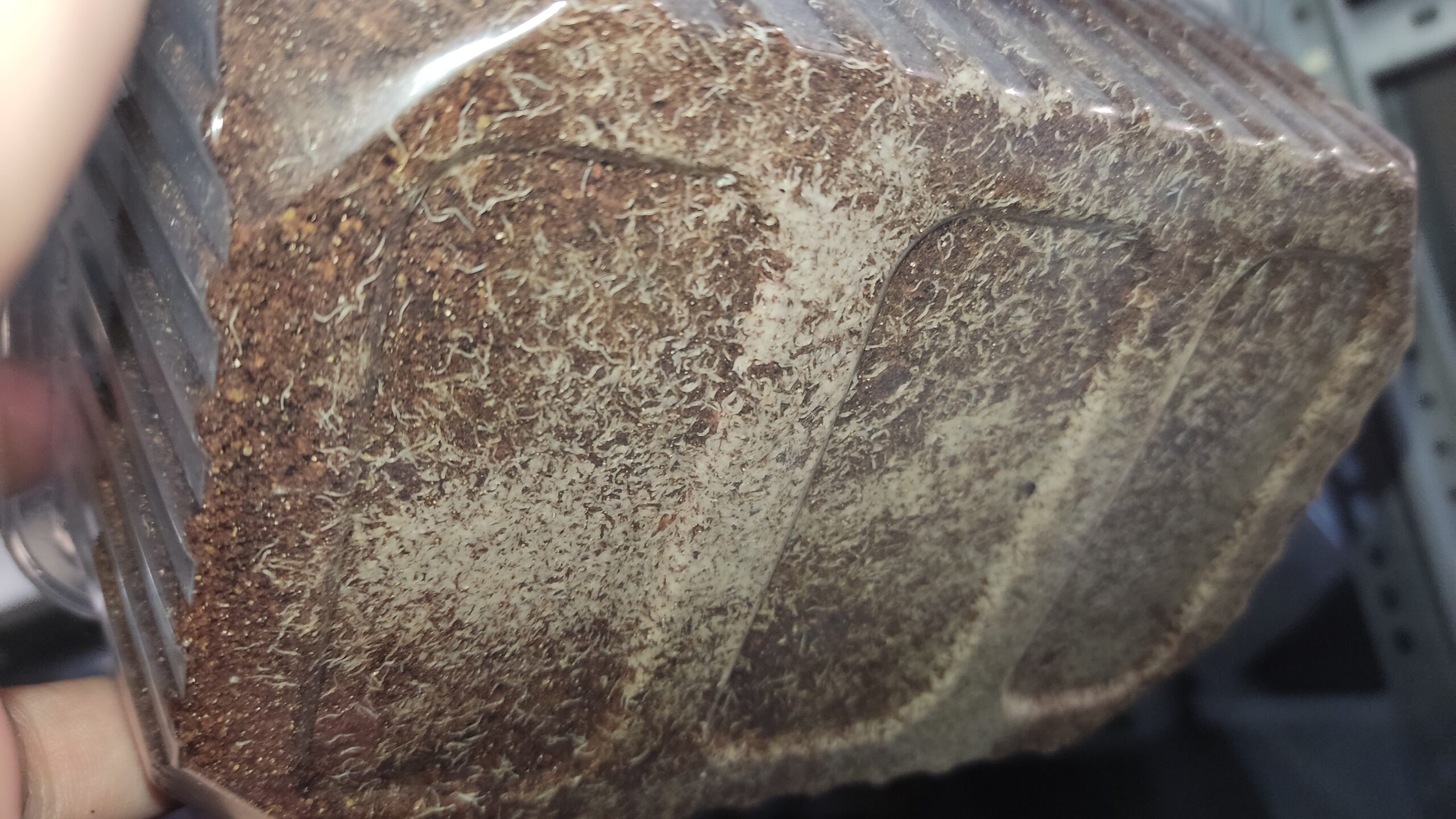 Вентиляция важна потому, что во время культивации накапливается большое количество влаги, а гриндаль хоть ее и любит, но очень сильно мельчает при ее избытке. Даже если у вас будет крышка с большими отверстиями, она не обеспечит должного выведения влаги из контейнера.