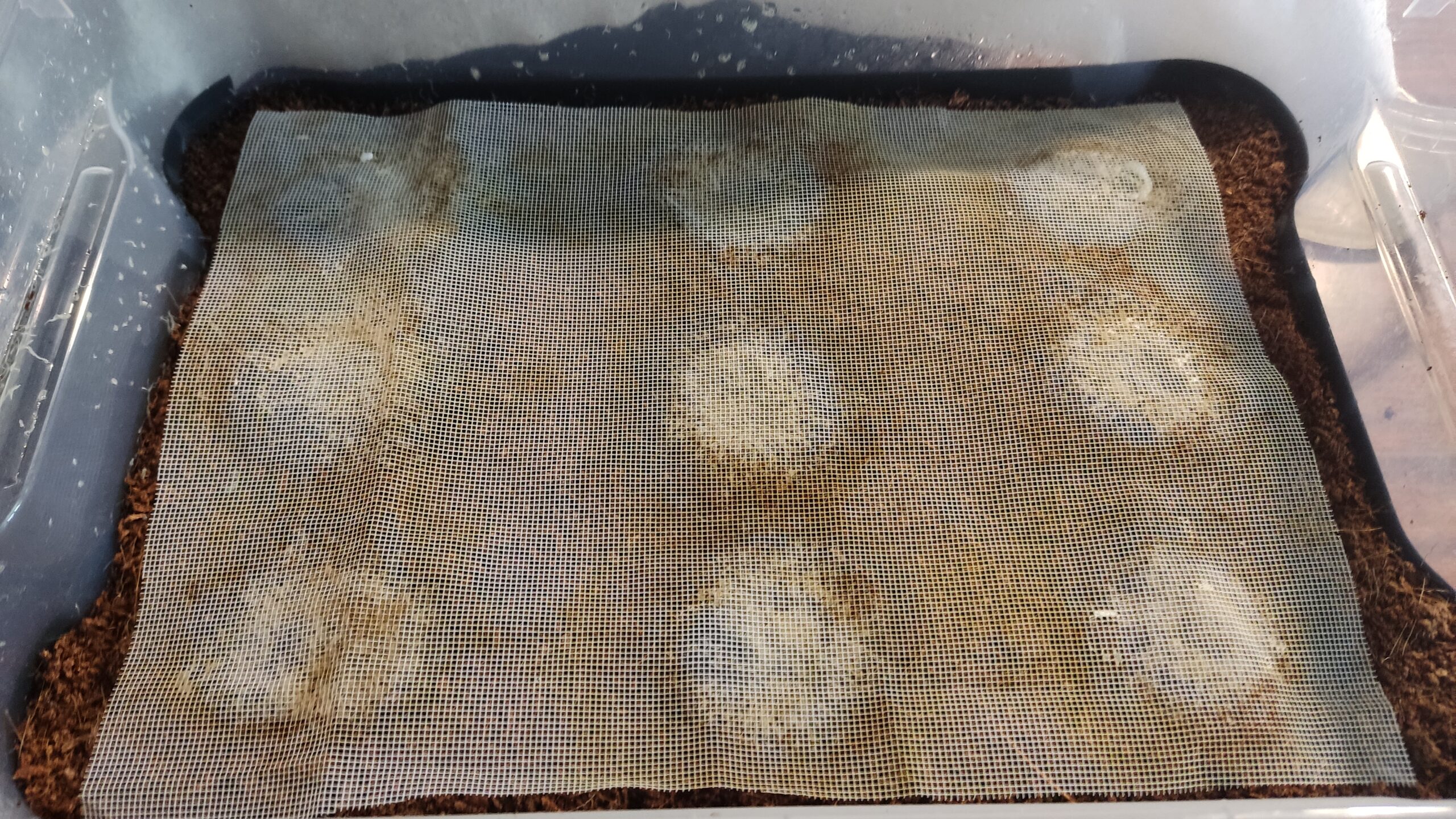 Назовем этот способ «разведение гриндаля на кокосовом субстрате с сетками для кормления». Занимаюсь этим червем долгое время, перепробовал много разных техник. Но на мой взгляд, это самая лучшая!