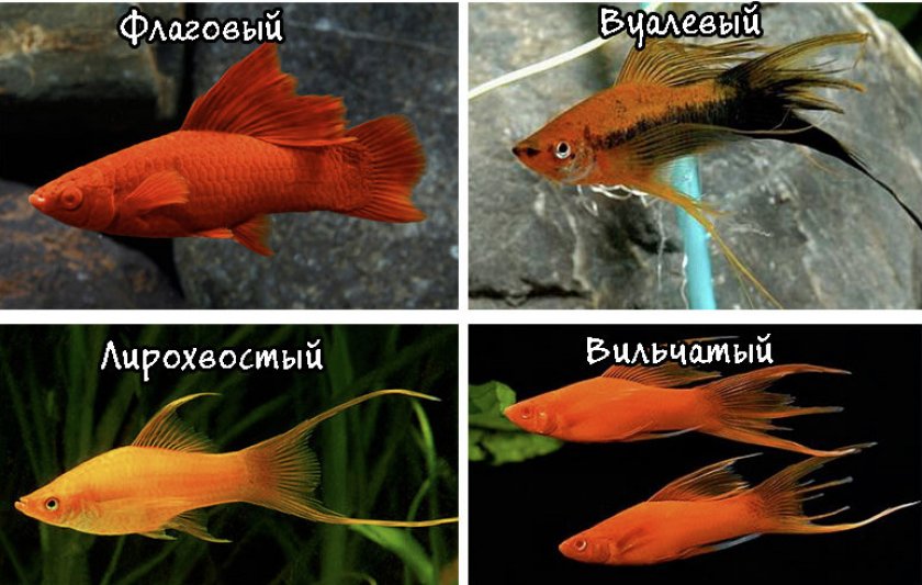 Разновидности меченосцев по форме плавников