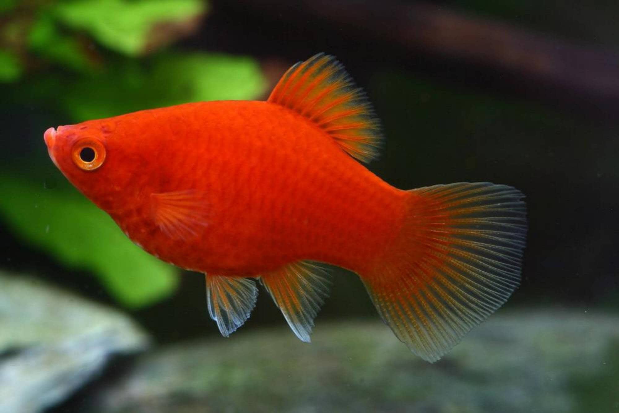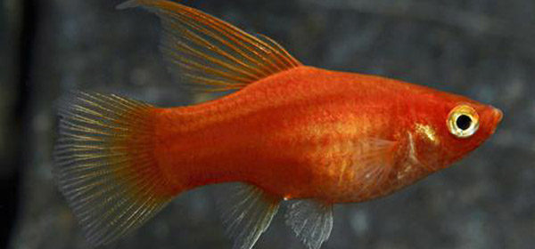 Эти рыбки имеют полностью красную окраску, включая хвост и спинной плавник. Некоторые ошибочно относят к этому виду рыбок с красной окраской, но черным хвостовым плавником. На самом деле, это не правильно, поскольку такие рыбки относятся к другому виду. А красная пецилия – полностью окрашена в красный цвет. Представители этого вида достигают размера – 5-7 см.