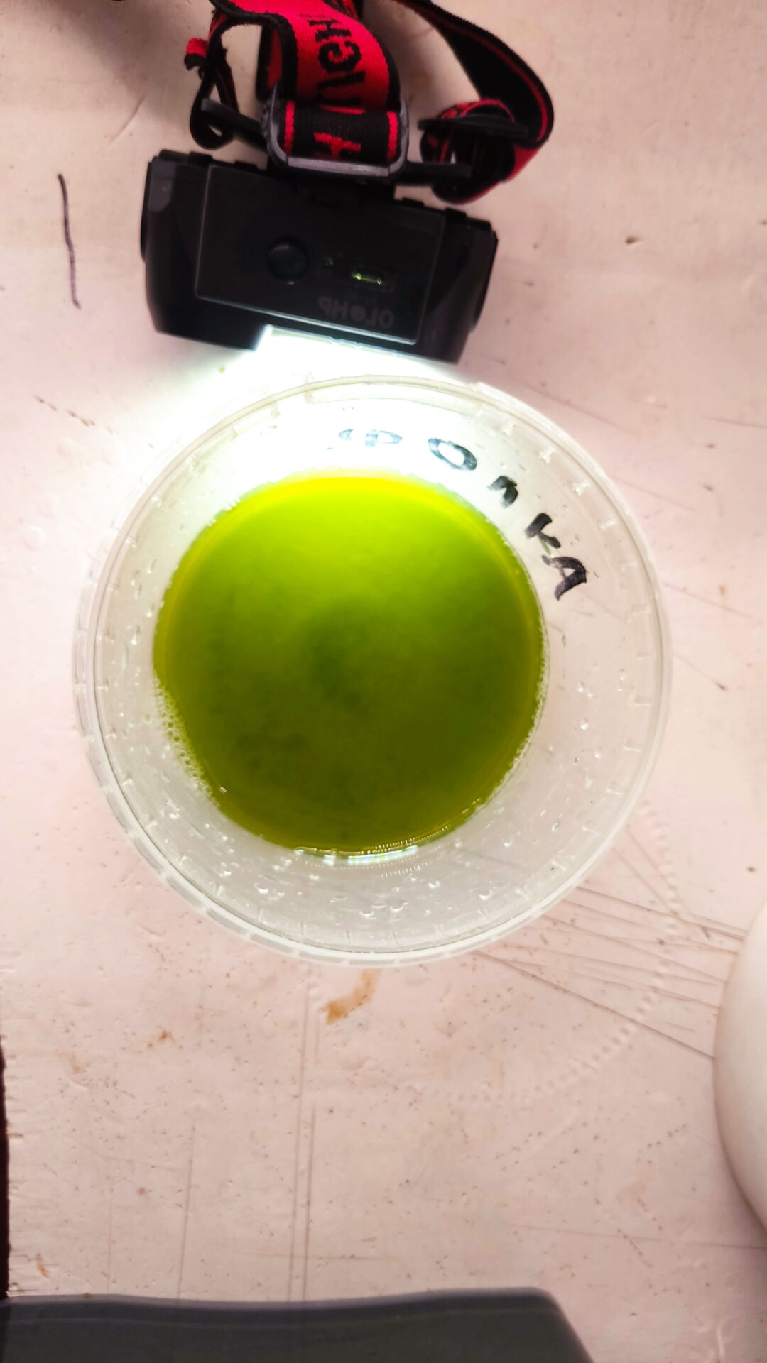 Как писал ранее, занимаюсь ей давно, поэтому перепробовал разные корма. На данный момент остановился на комбинированном корме. Это смесь дрожжей, молока, сухих порошков спирулины и хлореллы. Беру стакан, заливаю кипяченой воды (соль не добавляю, вода из культиватора испаряется всё-таки, поэтому нужно добавлять обычной воды). Добавляю щепотку сухих дрожжей для выпечки, пару миллилитров молока, щепотку спирулины и щепотку хлореллы. Размешиваю и вливаю в культиватор на глаз. До хорошего помутнения, когда коловратки много. И до легкого, когда численность небольшая (был перезапуск, стартовая культура и т.п.).