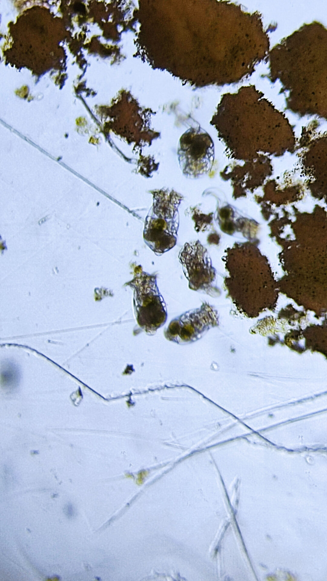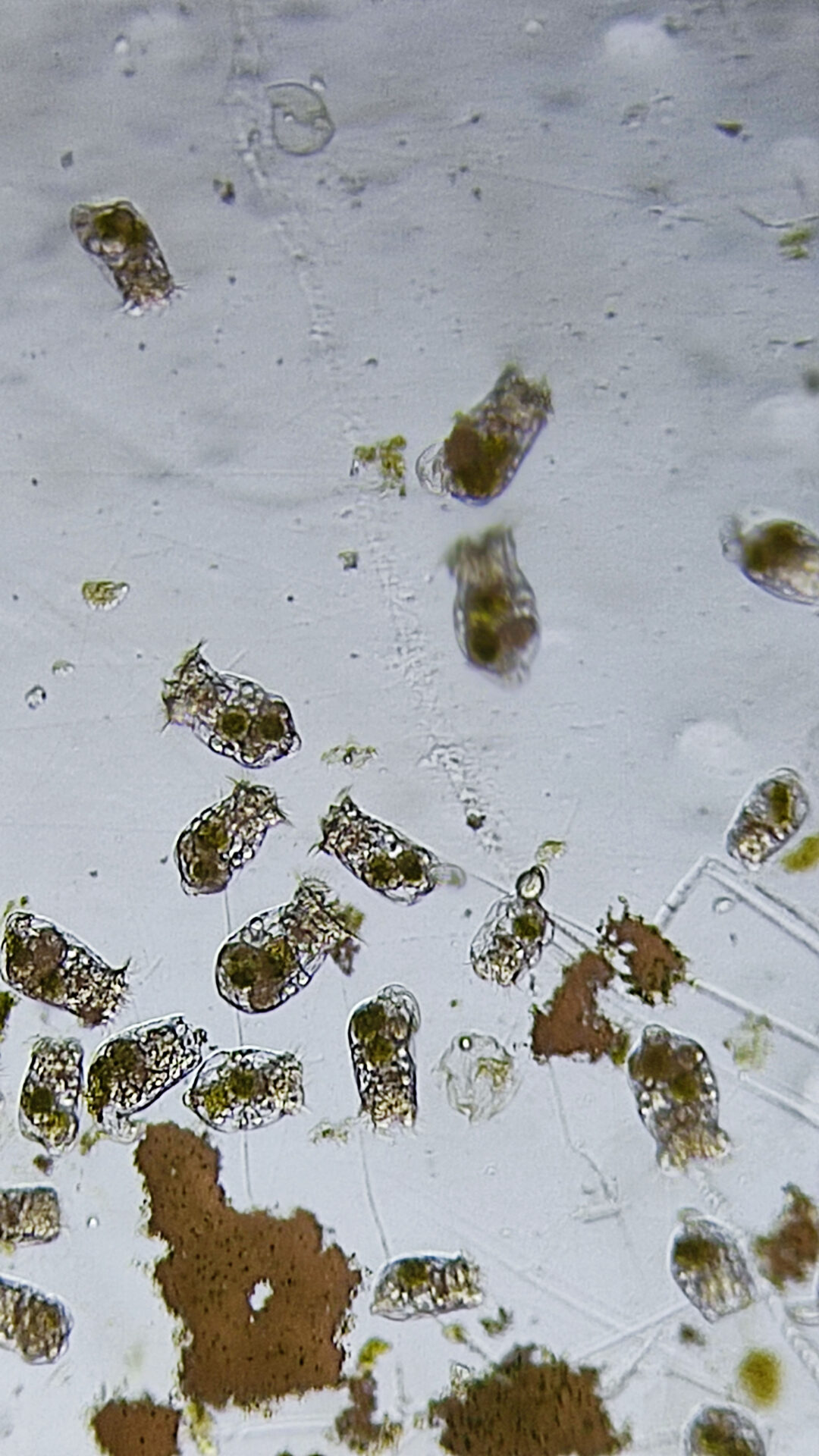 Солоноводная коловратка Брахионус (Brachionus plicatilis) под микроскопом (фото мои).