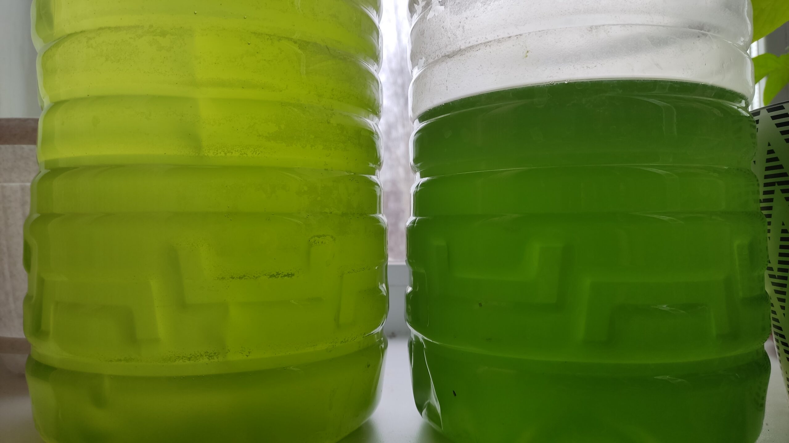 В качестве удобрения всегда пользуюсь специальной средой F/2 для таких морских водорослей, как тетраселмис и наннохлоропсис. Среда добавляется в подготовленную воду по инструкции. Обычно дозировку пишут на бутылке и идет она в 2х растворах. То есть в моем случае по 1 мл каждого раствора на 1 литр воды.