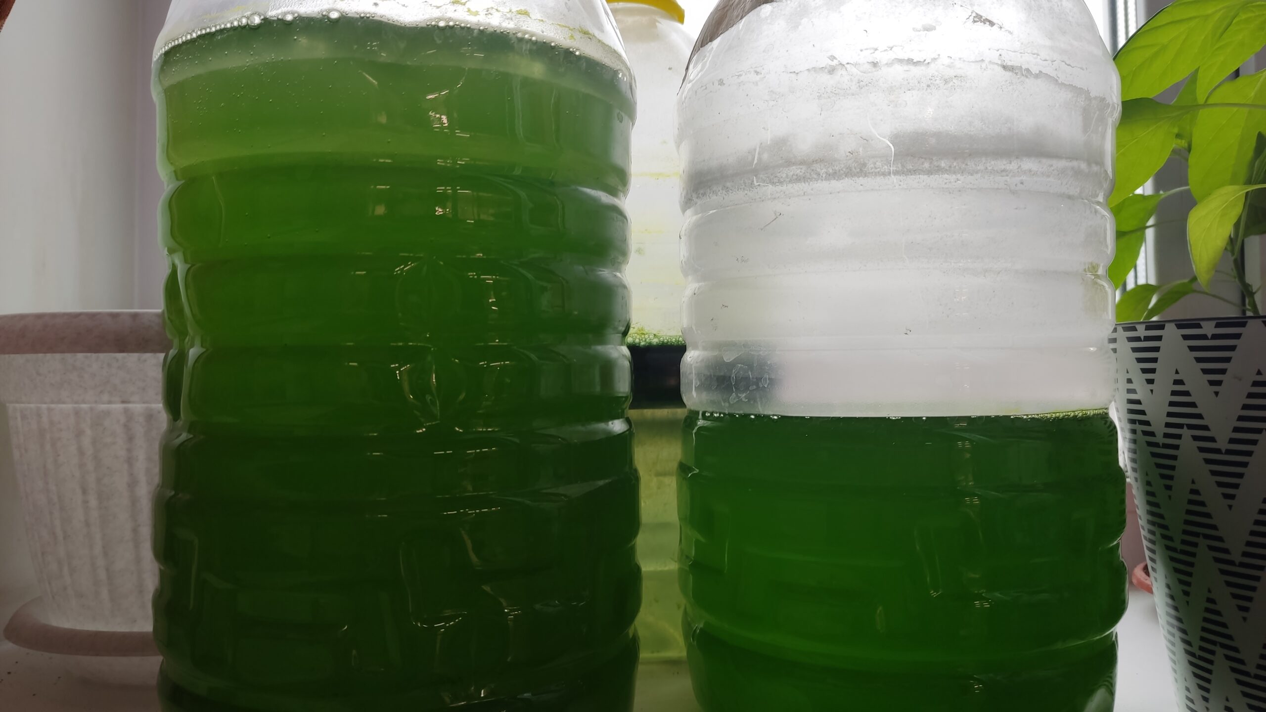 Я аэрацией не пользуюсь. Культура нарастает и так не плохо. Но если необходимо наращивать более плотные объемы, используется продувка. Есть еще специальные культиваторы для таких водорослей в виде высоких колб. Воздух подается снизу, и он проходит большое расстояние к поверхности, перемешивая среду и постоянно добавляя туда углекислый газ из атмосферного воздуха.